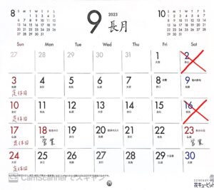 ホーム > News > 9月の営業日のお知らせ